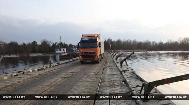 Понтонный мост как временная мера, заменяющая стационарный автомобильный мост, в конструкции которого 7 декабря прошлого года была обнаружена трещина, будет функционировать, пока позволяют погодные условия. «При неблагоприятных метеорологических явлениях, которые остановят работу понтонной переправы, людей вновь будут перевозить катерами. Меры по перевозке населения с одного берега на другой будут предприняты и при интенсивном ледоходе или шугоходе. В том числе рассматривается вариант организации транспортировки при помощи ледокола», — пояснил заместитель председателя райисполкома.