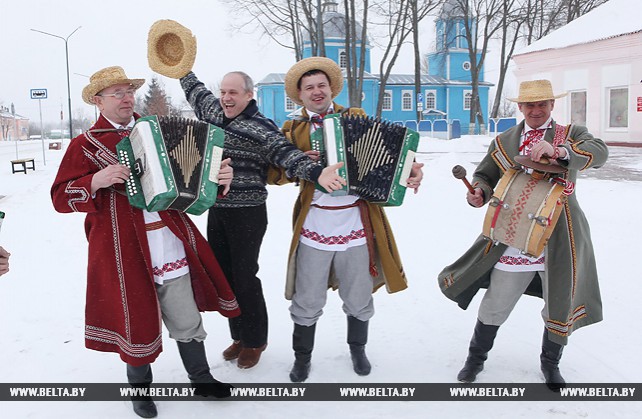 На снимке: солисты ансамбля «Ельский гармонiк» с главным режиссером фестиваля, заслуженным работником культуры Республики Беларусь Петром Свердловым.