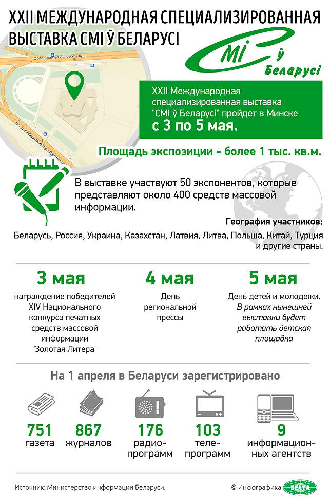 XХII Международная специализированная выставка «СМІ ў Беларусі» проходит в выставочном комплексе по просп.Победителей, 14. Вход свободный.