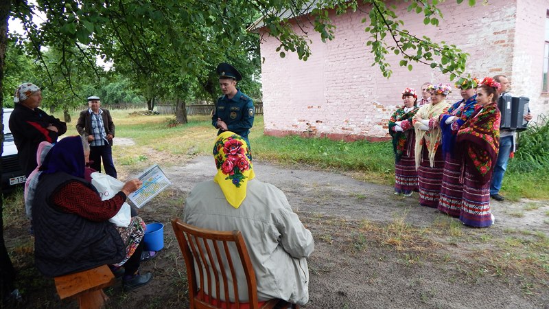 С целью предотвращения пожаров и гибели людей от них в сельской местности, районным подразделением МЧС используются всевозможные методы обучения граждан правилам безопасности. Одним из таких методов является проведение выступлений на сельских сходах граждан в малонаселенных пунктах совместно с «автоклубом» отдела культуры райисполкома. В этот раз посетили населенные пункты Осенское, Тартак, Слободка, Руднище, Боровского сельского совета.