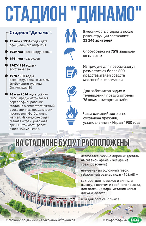 Стадион «Динамо» был официально открыт 12 июня 1934 года, реконструирован в 1939 году, разрушен во время Великой Отечественной войны. Новый стадион построен в 1947-1954 годах.
