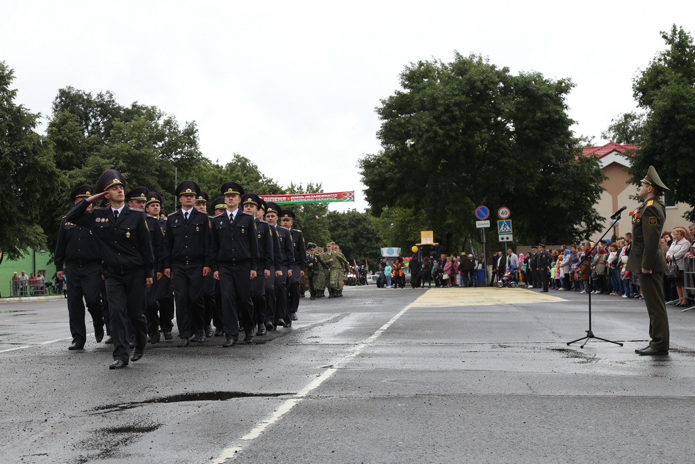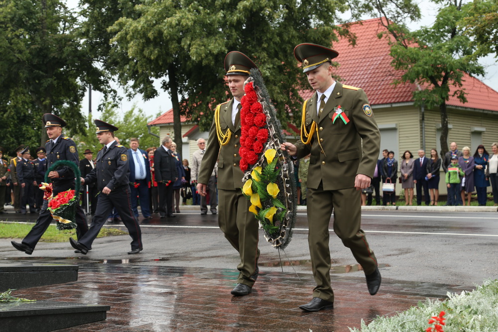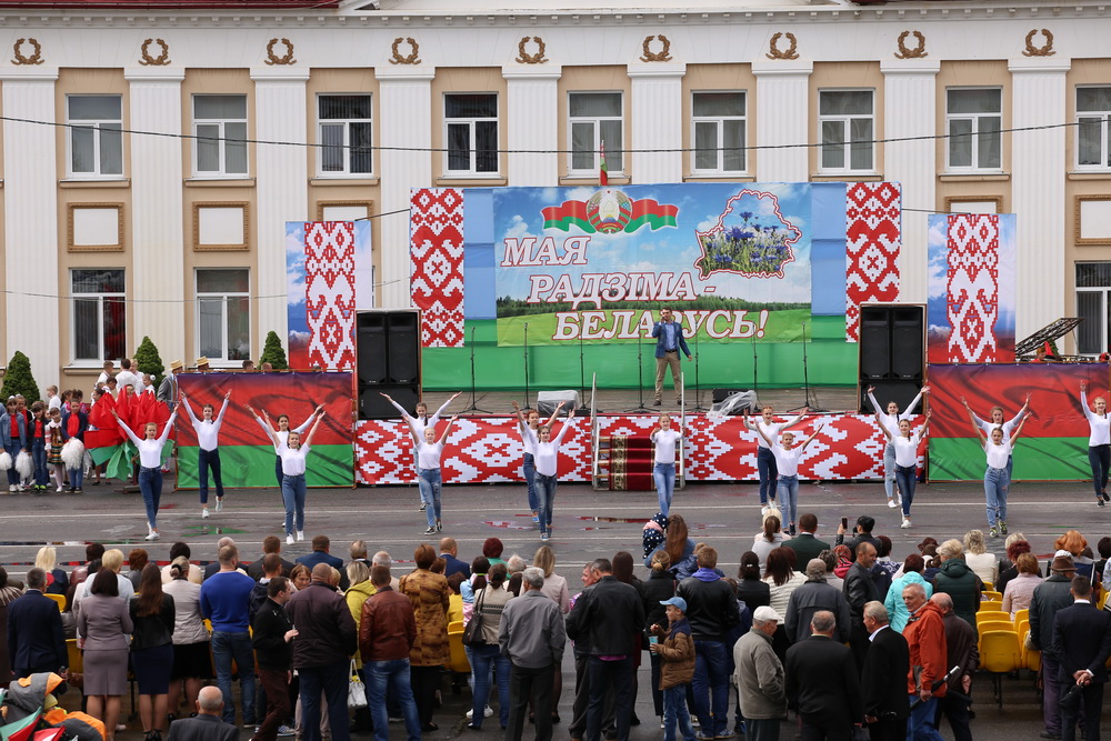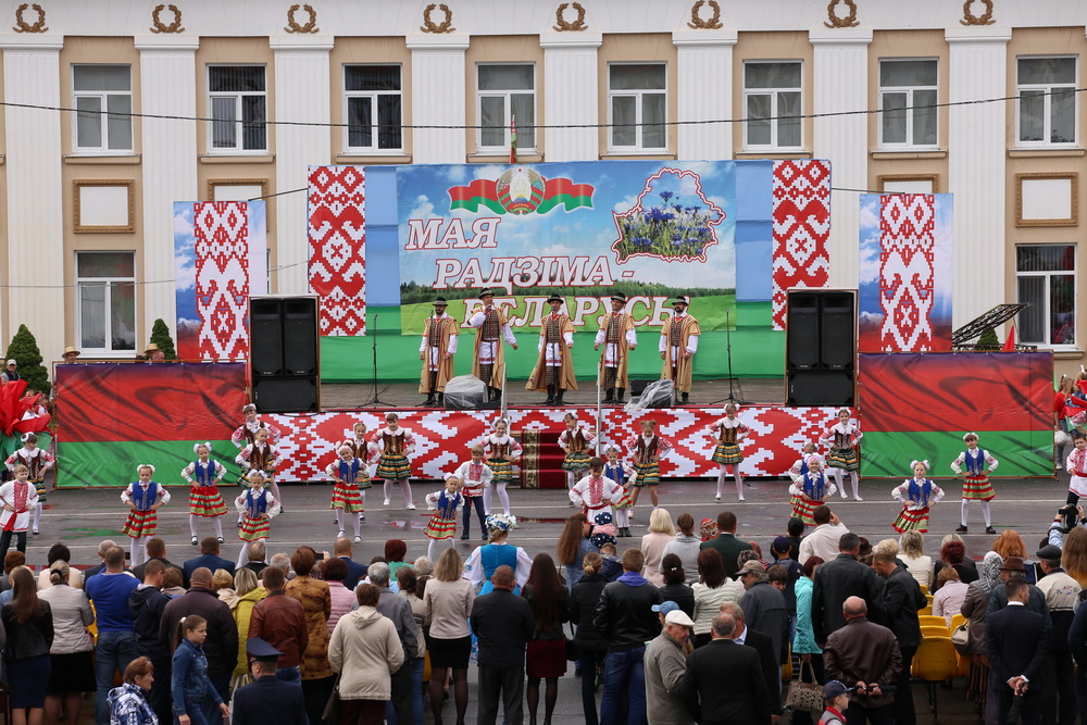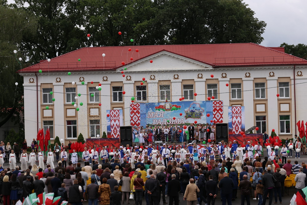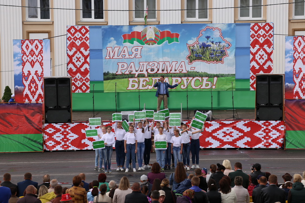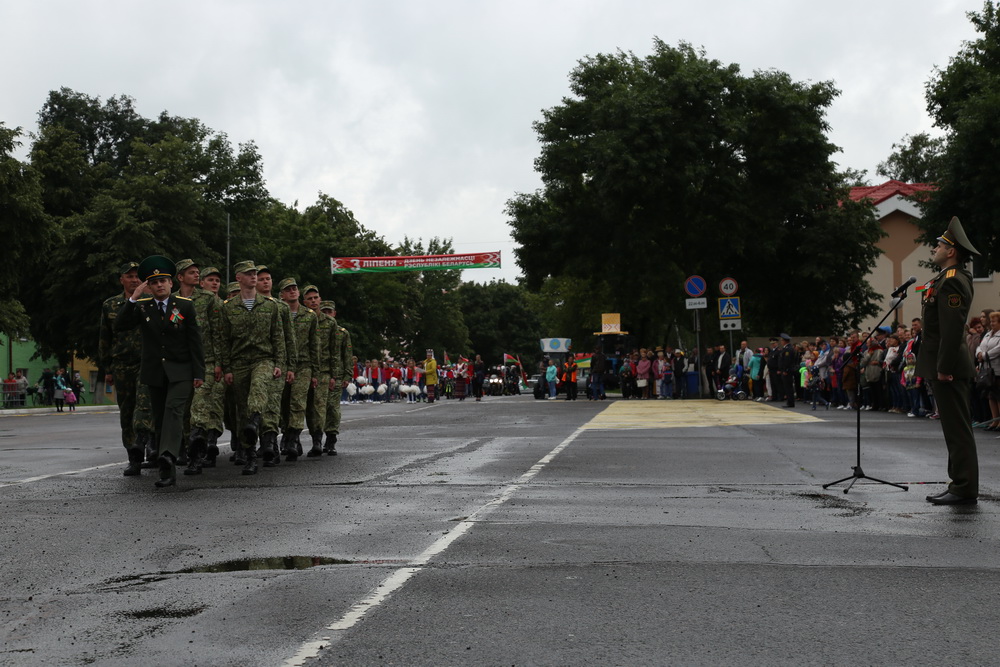 В продолжение праздничного торжества наши лучшие спортсмены, неоднократные победители международных, республиканских и областных соревнований и турниров, вынесли на площадь большой флаг Республики Беларусь — символ государственного суверенитета нашей страны. Зрелищно прошествовали девочки-барабанщицы, чеканным строевым шагом промаршировали сотрудники районного отдела внутренних дел, районного отдела по чрезвычайным ситуациям, военнослужащие-пограничники. Их сменили дети на роликах, которые держали в руках картинки «Я люблю Беларусь», затем проследовали колонны велосипедистов и мотоциклистов.