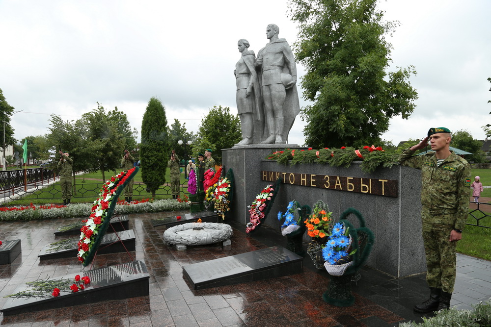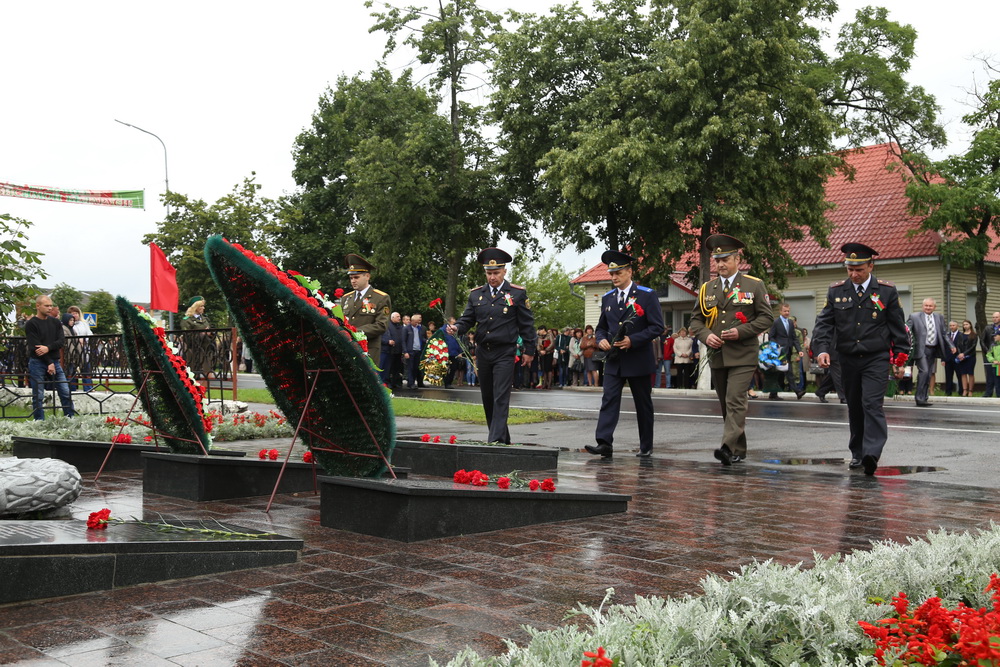 К десяти часам утра городская площадь, празднично украшенная развевающимися флагами цвета символики нашей страны, наполнилась народом. Лельчане торжественным шествием по центральной улице города направились к братской могиле-памятнику опергруппе ЦК ВЛКСМ. У мемориала руководство района, депутаты, представители сельисполкомов, предприятий, учреждений, общественных организаций района, военнослужащие, молодёжь возложили к его подножию венки и живые цветы, отдали дань уважения и памяти погибшим в годы Великой Отечественной войны. В честь знаменательной исторической даты прозвучали три оружейных залпа в небо. Думаю, каждый в эти мгновения с благодарностью вспомнил своих отцов, дедов и прадедов, победивших в кровопролитной схватке с врагом. Дай Бог, чтобы такие залпы раздавались только в мирное небо.