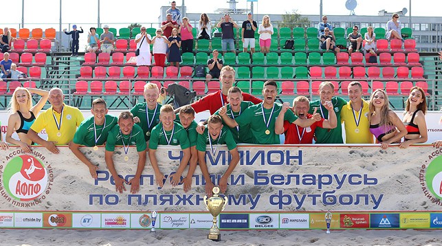 13 августа, Минск /Корр. БЕЛТА/. Команда «Гроднооблспорт» впервые завоевала золотые медали чемпионата Беларуси по пляжному футболу, прервав 7-летнюю чемпионскую гегемонию борисовского БАТЭ, сообщает корреспондент БЕЛТА.