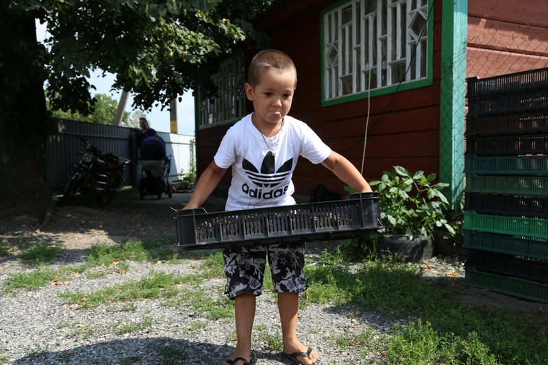 Екатерина Герман из Дубровы принимает ягоды уже пять лет. Её рабочий день длится с восьми утра и до восьми вечера. За это время она принимает у населения до 450 килограммов ягод. Раньше, признаётся Екатерина, были года ещё богаче на лесные дары, и в день она принимала до трёх с половиной тонн! Работа непростая, требует физических сил, но у неё растут помощники — настоящие мужчины — сыновья Лёша и Саша, которые пока больше едят ягоды, чем помогают, но всему своё время.