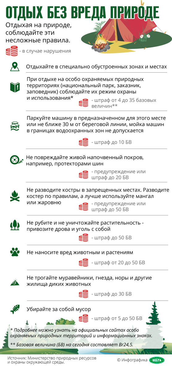 2. При отдыхе на особо охраняемых природных территориях (национальный парк, заказник, заповедник) соблюдайте их режим охраны и использования*.