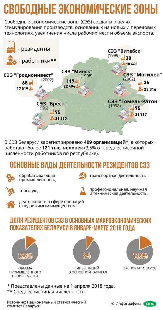 СЭЗ «Витебск» (1999) — 38 резидентов, 10 662 работника,