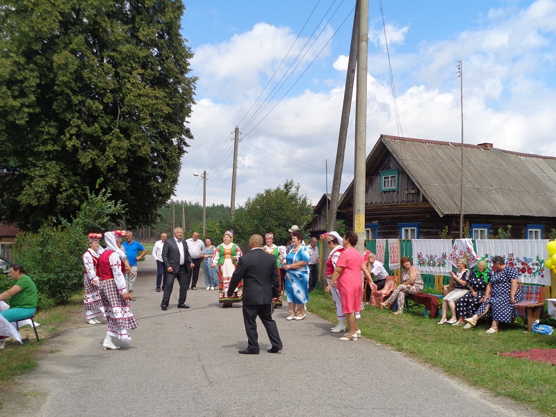 Падарунак і кветкі за лепшае падвор’е атрымалі Уладзімір і Таццяна Ліпскія. У высокім прасторы плывуць хмаркі, цёплы, рэдкі дожджык нібы благаслаўляе ўсіх прысутных. Гэта іх стараннем, іх руплівымі рукамі наведзены навокал парадак, прыбраны двары і вуліцы, пафарбаваны дамы, бацькоўскія хаты не выглядаюць сіратліва, а радуюць вока кожнага, хто сюды завітае.