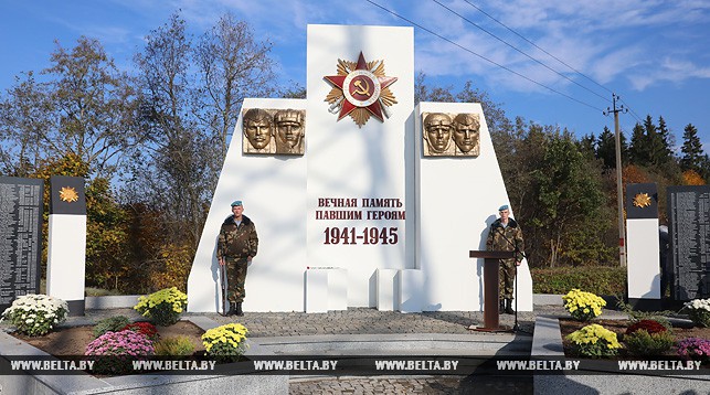 13 октября, Лиозно /Андрей Щербицкий — БЕЛТА/. Мемориальный комплекс «Адаменская горка» после реконструкции открыли в Лиозно во время торжеств, посвященных 75-летию освобождения Лиозненского района, передает корреспондент БЕЛТА.