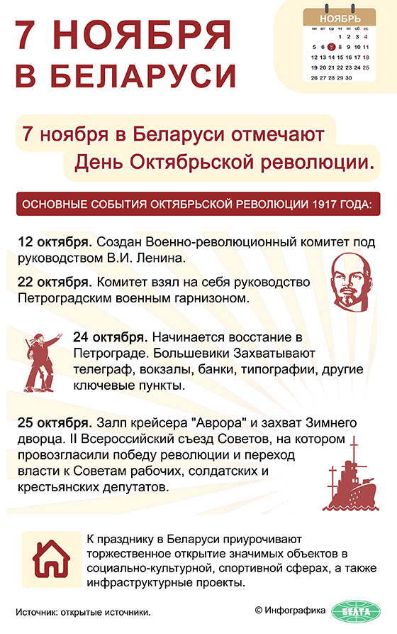 7 ноября в Беларуси отмечают День Октябрьской революции.