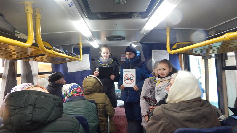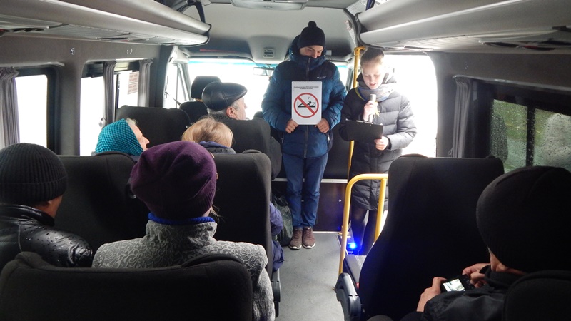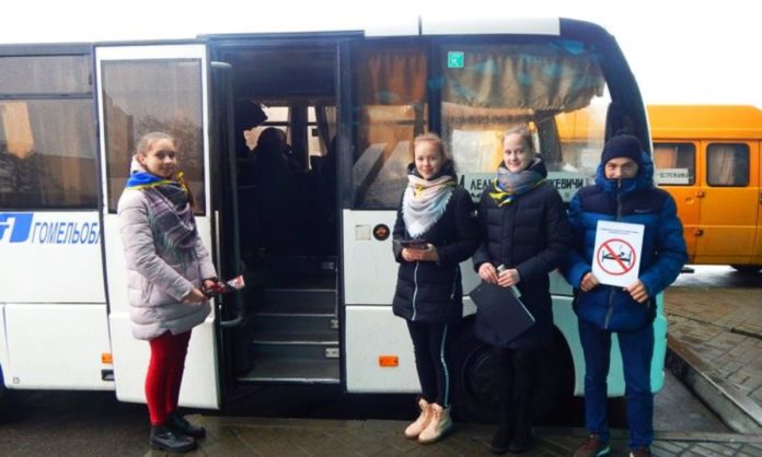 Участники акции проводили беседы с гражданами на автостанции и в общественном транспорте, проехав по маршруту №2 г.п. Лельчицы.