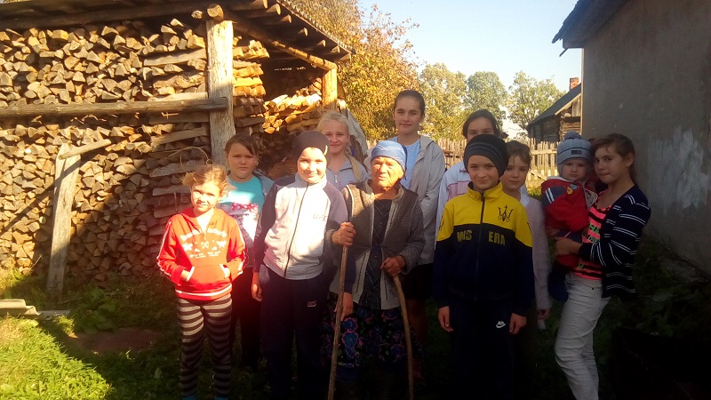 Но не у каждого есть бабушки, и я решила провести с ребятами встречу с долгожительницей нашей деревни Екатериной Акимовной Демковой. И мы отправились к ней в гости. Ребята очень удивились, когда узнали, что Екатерина Акимовна родилась в 1928 году. В 90 лет бабушка ходит на своих ногах, правда, с палочками и даже держит в хозяйстве козу и курей. Много вопросов поступало от ребят Екатерине Акимовне, на которые она с удовольствием отвечала. Дети услышали о годах жизни во время войны с фашистами, о послевоенном времени, как трудно в то время пришлось. Все удивились, когда наша собеседница начала читать патриотические стихи о войне, и восхитились тем, как много их знает бабушка и с какой интонацией она читала. Встреча, которая длилась около двух часов, прошла на одном дыхании.