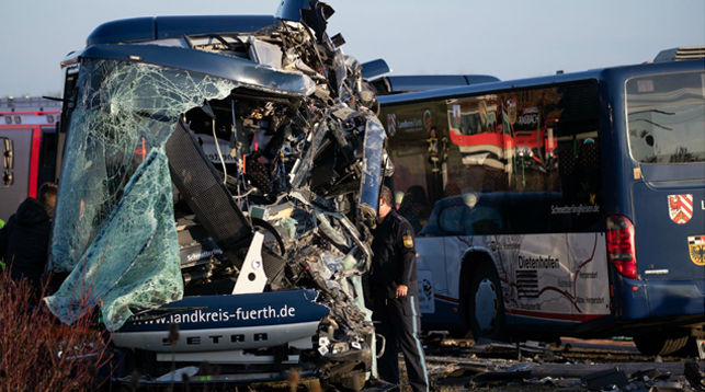 Лобовое столкновение автобусов произошло на дороге между городами Цирндорф и Аммерндорф 15 ноября.