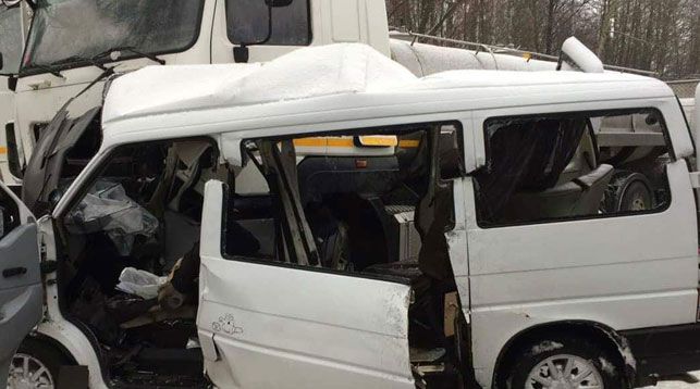 Как рассказали в УГАИ УВД Гомельского облисполкома, по предварительной информации, водитель «Фольксвагена» не справился с управлением, выехал на полосу встречного движения и столкнулся с МАЗом. На колесах микроавтобуса была установлена летняя резина, у грузовика — всесезонная.