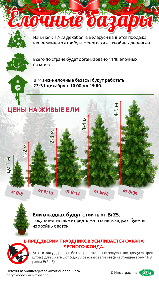 Начиная с 17-22 декабря в Беларуси начнется продажа непременного атрибута Нового года — хвойных деревьев.