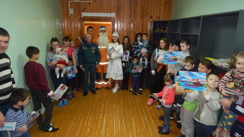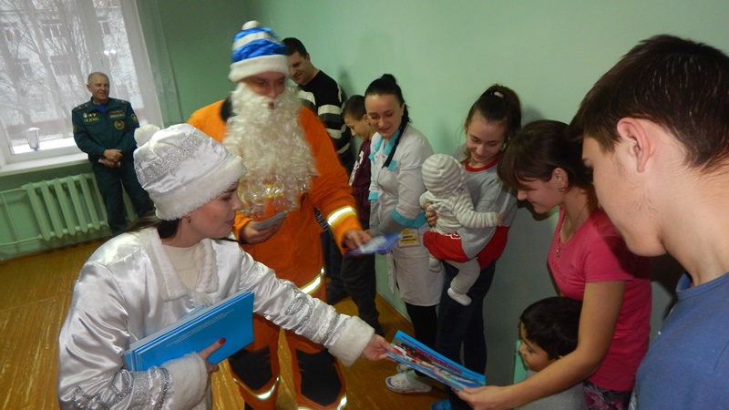 Дед Мороз в форме спасателя и Снегурочка разъясняли как детям, так и взрослым как безопасно организовать и провести предстоящие Новогодние торжества. Для закрепления полученных знаний Снегурочка провела с детьми конкурсы и викторины. В завершении дед Мороз поздравил ребят и их родителей с наступающими праздниками и пожелал им быстрого выздоровления, также вручил маленьким участникам акции книжки – раскраски «Учим правила безопасности вместе», «Пожарная аварийно-спасательная техника», а взрослым – буклеты «Безопасный Новый год!».