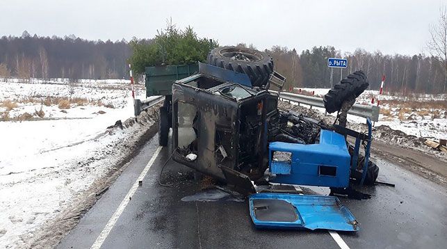 По предварительной информации, погиб тракторист лесхоза. Авария произошла сегодня около 13.50 на 43-м км автодороги Р17 Брест-граница Украины-Олтуш. Вблизи деревни Замшаны МАЗ с полуприцепом столкнулся с трактором, который в прицепе вез новогодние ели. От удара трактор опрокинулся, тракториста выбросило из кабины на дорогу под колеса грузовика. От полученных травм мужчина скончался.
