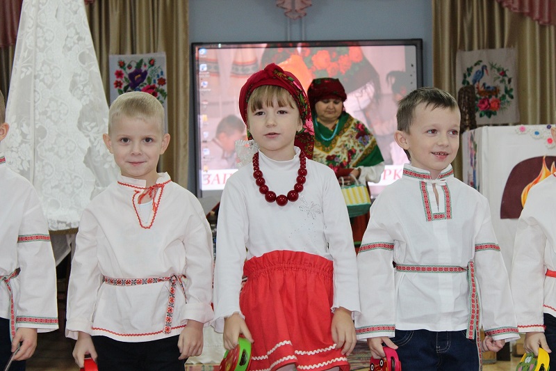 А калі цётка Алена (выхавацель старэйшай групы Алена Акуліч) запрасіла да сябе на вячоркі дарослах і дзяцей, то наша беларуская мова загучала, заззяла пералівамі народных песень. У гэты вечар музычная зала была стылізавана пад хату нашых продкаў. Там была печ, пад столяю вісела дзіцячая калыска, усё было заслана вышытымі абрусамі і рушнікамі, стаялі розныя прылады, а на стале — пачастункі для гасцей, бо беларуская хата пірагамі і хлебам багата. Ох, і весела было на вячорках у цётачкі Алены! Дзеці спявалі прыпеўкі, беларускія народныя песні, танцавалі «Нарэчаньку», полечку, дапамагалі гаспадыні збіць масла ў маслабойцы, гулялі з Коцікам у хвосцікі і ў Мікіту, расказвалі небыліцы. Гэта цудоўнае, яскравае фальклорнае свята дапамагло выхаванцам старэйшай групы дакрануцца да жыцця людзей, якія жылі ў мінулыя гады на нашай малой радзіме.