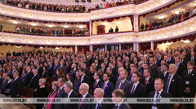 Текст поздравления на торжественном мероприятии в Национальном академическом Большом театре оперы и балета озвучил премьер-министр Сергей Румас.