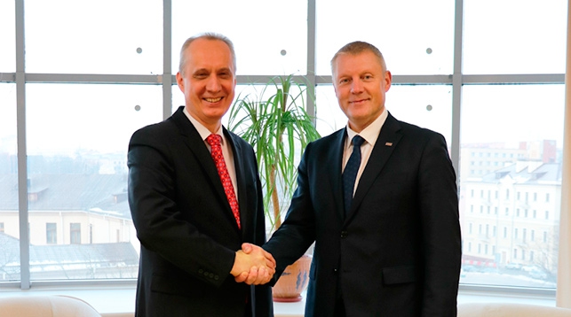 8 февраля, Минск /Корр. БЕЛТА/. Накануне четвертого раунда ежегодных белорусско-латвийских межмидовских консультаций по вопросам международной и региональной безопасности 8 февраля состоялась встреча заместителя министра иностранных дел Беларуси Андрея Дапкюнаса с руководителем дирекции политики безопасности и международных организаций Министерства иностранных дел Латвии Эдгарсом Скуйей. Об этом БЕЛТА сообщили в пресс-службе МИД Беларуси.