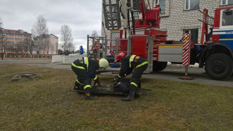 По замыслу учений на данном объекте произошло возгорание на четвертом этаже палатного корпуса. Сообщение об условном пожаре и возможном нахождении людей в нем поступило от приемного врача в 11:10 в центр оперативного управления Лельчицкого районного отдела по чрезвычайным ситуациям. По прибытию подразделений МЧС администрацией объекта уже была запущена система оповещения работников о пожаре, проводилась эвакуация людей.