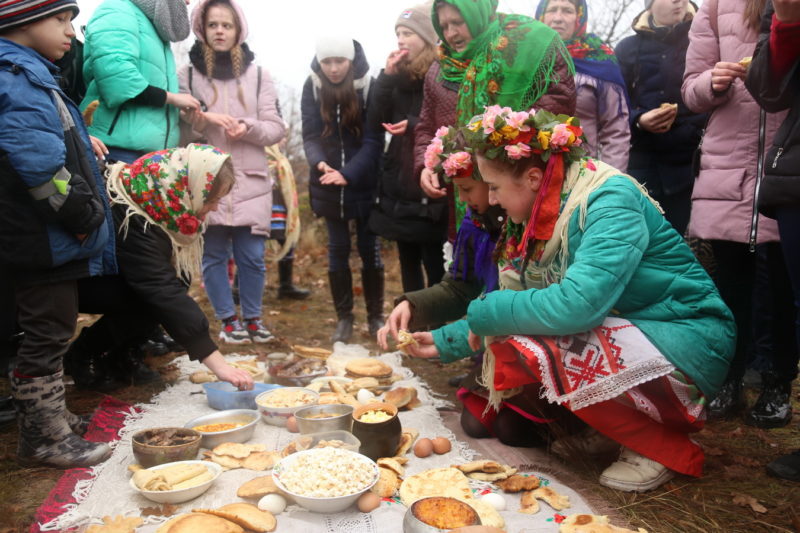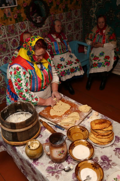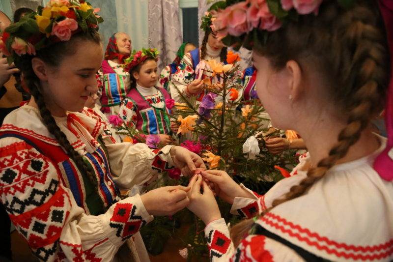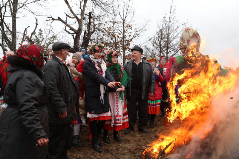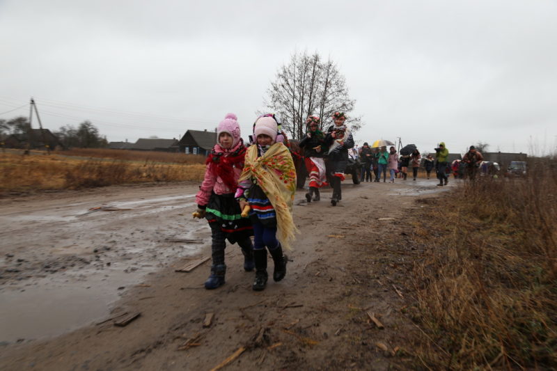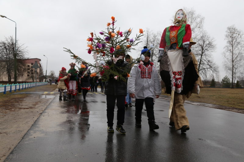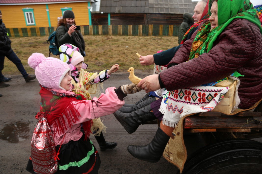 Традиционный обряд «Чырачка» состоялся в Тонеже, несмотря на пасмурную погоду и отсутствие снега. Здесь пекли пироги, украшали ёлку, водили хороводы, жгли чучело Зимы и катались с горки.