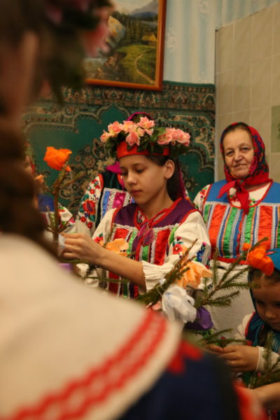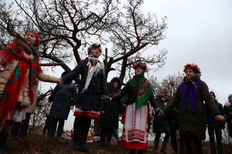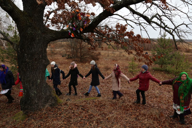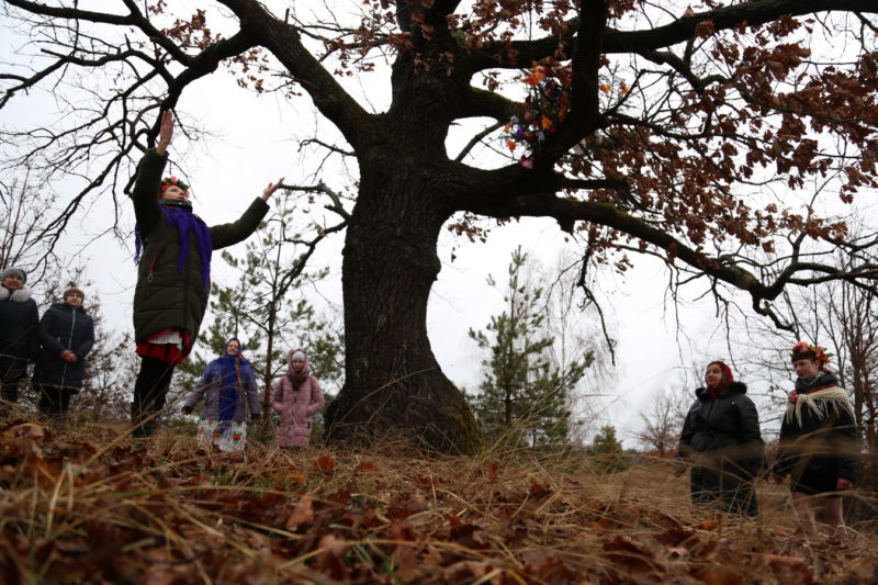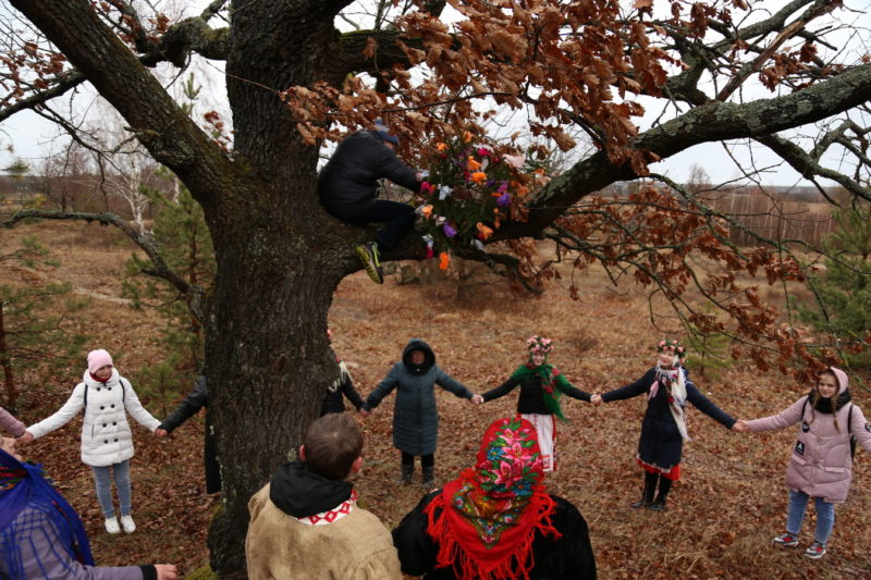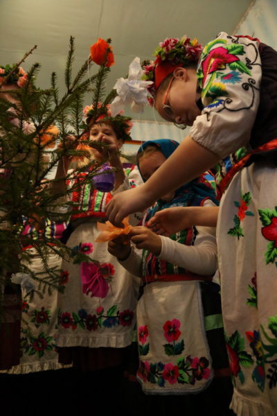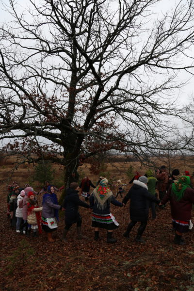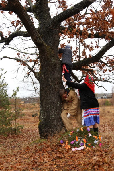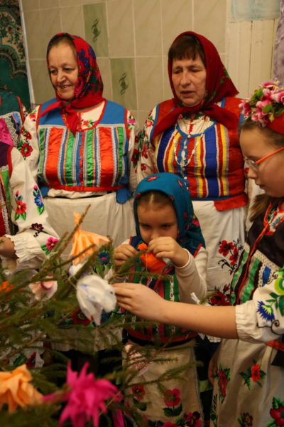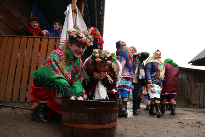 Традиционный обряд «Чырачка» состоялся в Тонеже, несмотря на пасмурную погоду и отсутствие снега. Здесь пекли пироги, украшали ёлку, водили хороводы, жгли чучело Зимы и катались с горки.