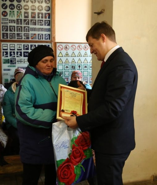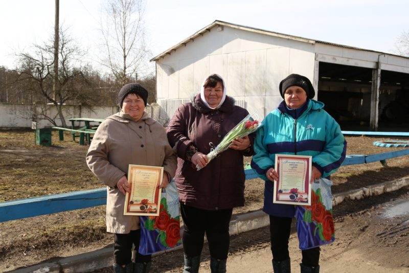 Анатолий Гапоник поблагодарил их за тяжёлый труд и вручил благодарности и профсоюзные подарки животноводам Татьяне Кащук, Галине Белоусовой, Марии Боровой и Оксане Круковской.