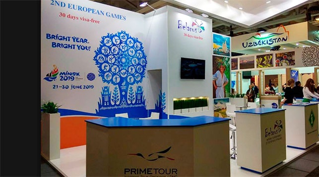 Туристические возможности Беларуси представлены с акцентом на II Европейские игры, которые пройдут в 2019 году в Минске, и возможность безвизового въезда в страну.