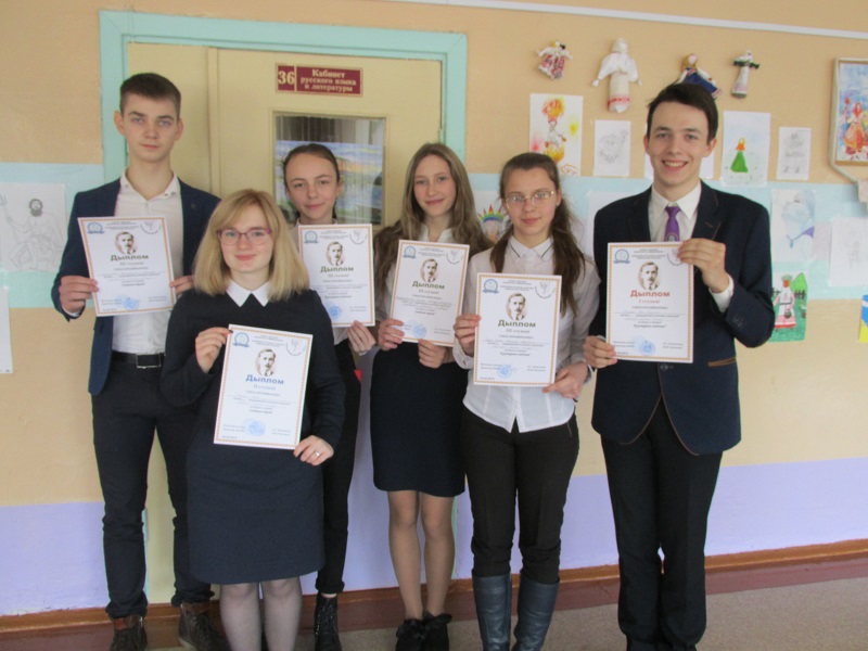 Сем вучняў нашай гімназіі прыехалі ў Мазыр, каб прыняць удзел у конкурсе чытальнікаў і абараняць даследчыя работы этнаграфічнага і краязнаўчага кірунку. І усе выступленні гімназістаў атрымалі высокую адзнаку журы. Так, у секцыі «Мой творчы радок» уладальнікамі дыпломаў ІІ ступені сталі Ілья Варановіч, Ганна Ражкова и Дар’я Рафаловіч; у секцыі «Палессе ў творах беларускіх пісьменнікаў» дыпломам ІІІ ступені ўзнагароджана Вераніка Варановіч, у секцыі «Святыня народа» дыпломам ІІ ступені адзначана Марыя Раеўская, дыпломамі ІІІ ступені — Улада Казачэнка, Канстанцін Маркевіч і Ганна Хамутоўская, у секцыі «Культурная спадчына» дыпламантам І ступені стаў Іван Багдаевіч, дыпламантамі ІІІ ступені — Паліна Буцько і Маргарыта Касінская. Падрыхтоўку да Купалаўскіх чытанняў праводзілі настаўнікі Ірына Казачэнка, Валянціна Казачок і Надзея Алесіч. Мы віншуем творчы тандэм педагогаў і іх адораных вучняў, жадаем новых поспехаў.