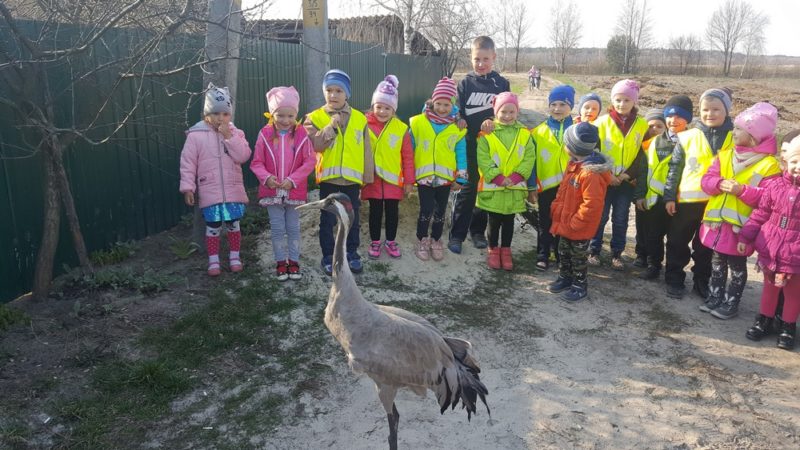 Журавль оказался гостеприимным и с большим удовольствием похаживал, позируя перед детьми. Дети смогли вблизи рассмотреть журавля и в хорошим настроении возвращались в детский сад.