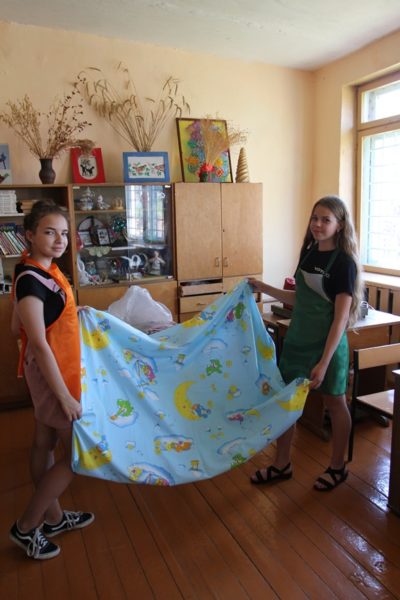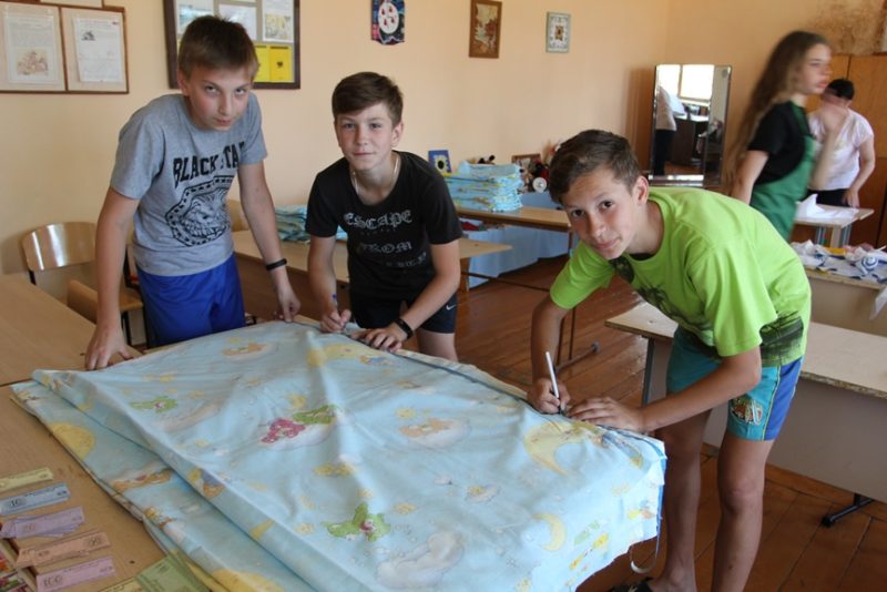 Постельное бельё, сшитое руками ребят, которые посещают трудовой лагерь в первой городской школе, станет школьным имуществом и позаботится о маленьких первоклассниках на продлёнке в следующем году.