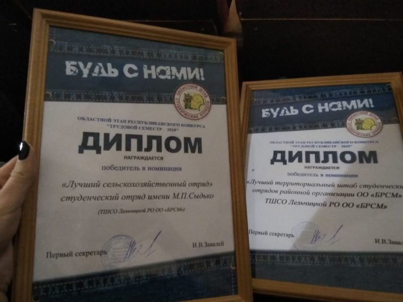 Третий год подряд наш районный комитет общественного объединения Белорусского республиканского союза молодёжи отличился в областном этапе республиканского конкурса «Трудовой семестр-2019» и вновь стал победителем сразу в двух номинациях: «Лучший студенческий сельскохозяйственный отряд» и «Лучший территориальный штаб студенческих отрядов».