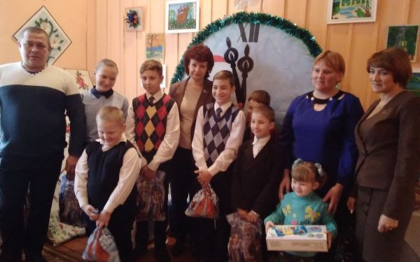 Расставаясь, Владимир, Марина и их дети — Диана, Дмитрий, Дарина, Никита, Алексей, Владимир, Антон с благодарностью и взаимными поздравлениями к депутатам приняли сладкие подарки, которые тут же принялись рассматривать.