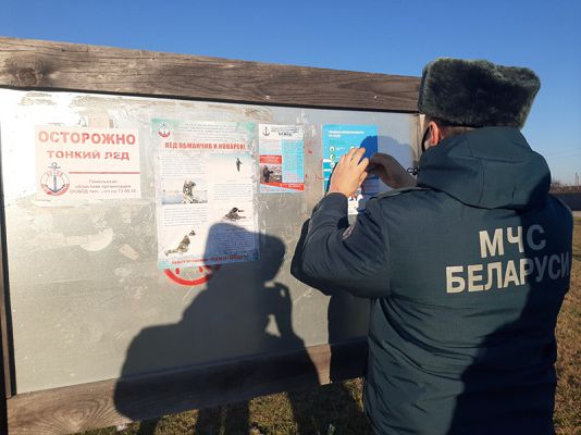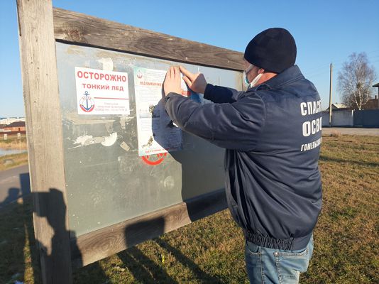 В ходе проведения рейдовых мероприятий спасатели устанавливали таблички «Осторожно. Тонкий лёд», а также на информационных стендах разместили наглядно-изобразительную продукцию по недопущению выхода на тонкий лёд.