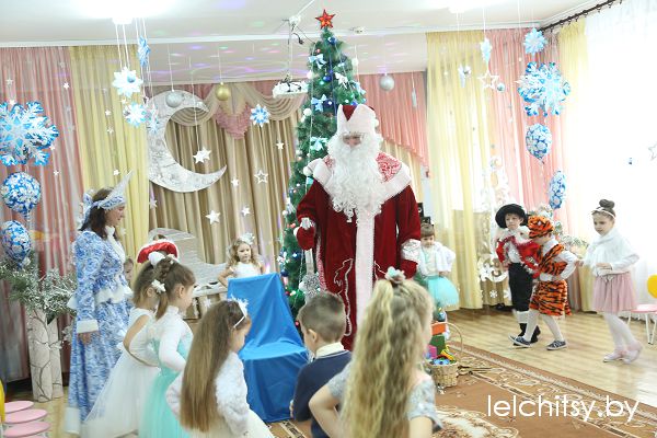 В преддверии волшебных праздников к воспитанникам государственного учреждения образования «Лельчицкий ясли-сад №5» наведались гости, среди них — председатель райисполкома Сергей Косинский, заместитель председателя райисполкома Наталья Шишканова, начальник отдела образования, спорта и туризма райисполкома Владимир Гриб.