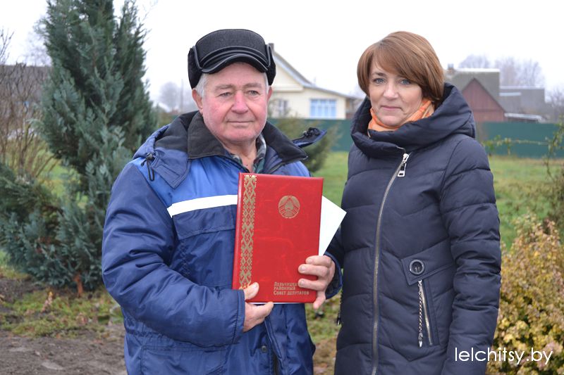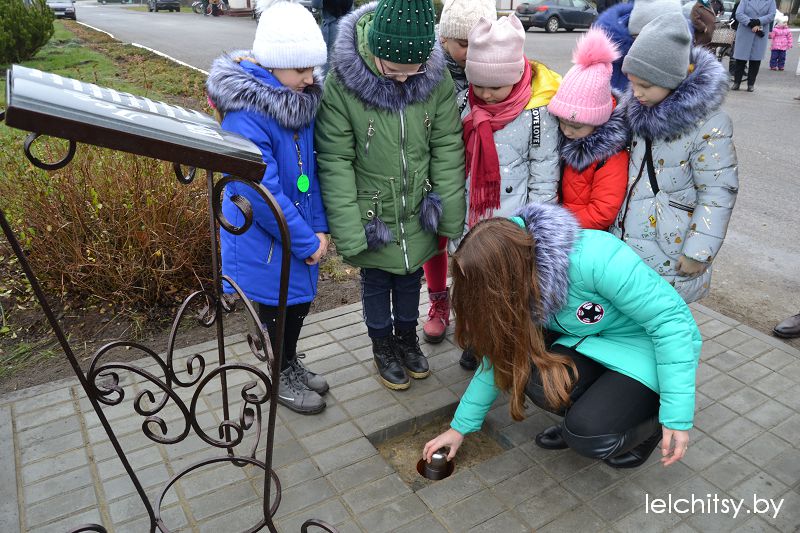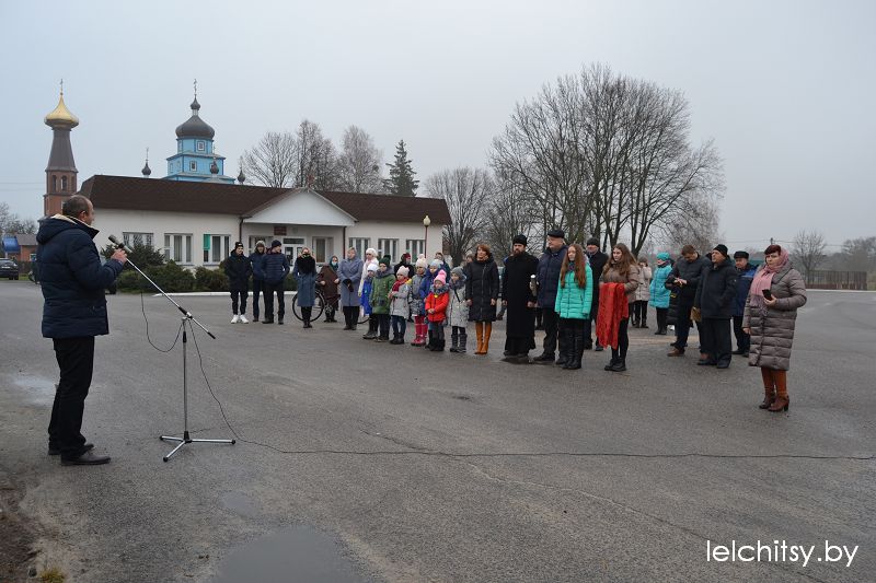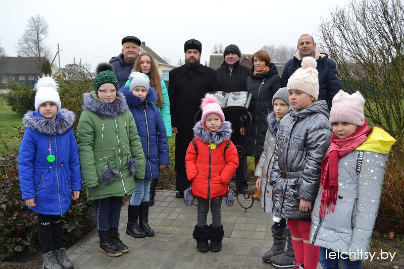 Глава райсовета вручила Почётную грамоту Лельчицкого районного Совета депутатов Адаму Павловичу Жукевичу за значительный личный вклад в развитие культурной, просветительской работы с населением и активное участие в общественной жизни агрогородка.На площадке возле памятного знака заложена капсула с посланием потомкам, которую они вскроют через пятьдесят лет. Этот исторический момент был пронизан духом патриотизма и любви к малой родине.