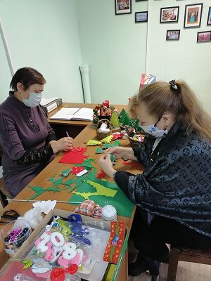 развитие фантазии, цветового восприятия и воображения. Воспитанники отделения изготовили «радужные стикеры», которые закрепили на «Доске пожеланий». На стикерах ребята написали добрые пожелания для своих родных и близких. Для тех, кто на данный момент не посещает отделение, руководители кружков с использованием современных технологий и учётом индивидуальных особенностей подопечных проводили занятия в онлайн-формате по изготовлению поделок к Новому году.
