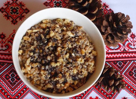 Ингредиенты: Стакан пшеницы. 100 г изюма. Половина стакана мака. 100 г грецких орехов. Две ложки меда.