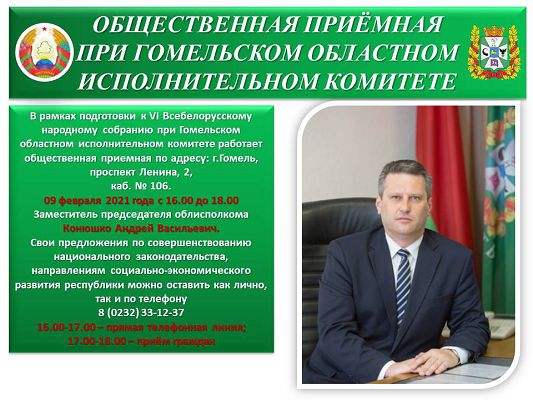 Домой Новости В области 9 февраля Андрей Конюшко проведёт приём в общественной приёмной при Гомельском облисполкоме НовостиВ областиНовости в районеОбществоПриём граждан 9 февраля Андрей Конюшко проведёт приём в общественной приёмной при Гомельском облисполкоме Автор Светлае жыццё - 08.02.2021 393 0 Если вы нашли ошибку, пожалуйста, выделите фрагмент текста и нажмите Ctrl+Enter. Like Like Love Haha Wow Sad Angry СХОЖИЕ СТАТЬИБОЛЬШЕ ОТ АВТОРА Здоровые города и посёлки Уход за руками в разном возрасте Калейдоскоп Лунный календарь на май 2026 года огородника и садовода Новости Таможня. Вопрос-ответ Новости О выборе и ценностях Гороскоп Гороскоп на сегодня, 20 апреля для всех знаков зодиака Новости Губительная красота. Почему в Радуницу важно заменить искусственные цветы на живые? Добавить комментарий Отменить ответВойдите, чтобы оставить комментарий Войти с помощью: Новое на сайте Мясной рулет из фарша: красивый разрез гарантирован — самое то для... 20.04.2026 Уход за руками в разном возрасте 20.04.2026 Лунный календарь на май 2026 года огородника и садовода 20.04.2026 Таможня. Вопрос-ответ 20.04.2026 О выборе и ценностях 20.04.2026