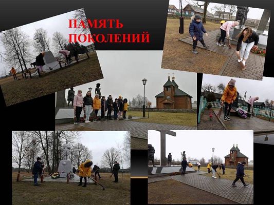 Сегодня воспитанники Тонежского детского – сада – базовой школы навели порядок вокруг памятника жертвам фашизма в агрогородке Тонеж.