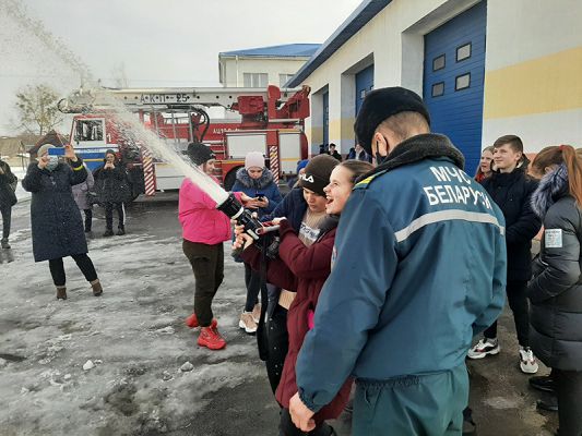 Учащиеся средней школы №2 посетили районный отдел по чрезвычайным ситуациям, где с ними работники РОЧС провели беседу о безопасности жизнедеятельности, рассказали о своей службе, с помощью чего в реальных условиях они побеждают огонь и как справляются с чрезвычайными ситуациями. Ребята смогли изнутри познакомиться с жизнью спасателей, со специальным оборудованием и техникой. Каждый желающий смог почувствовать себя в роли пожарных. Учащиеся с удовольствием провели время со спасателями. Администрация и классные руководители проводили информирование детей и их родителей посредством групп Viber и социальных сетей о правилах поведения на дорогах и пожарной безопасности.