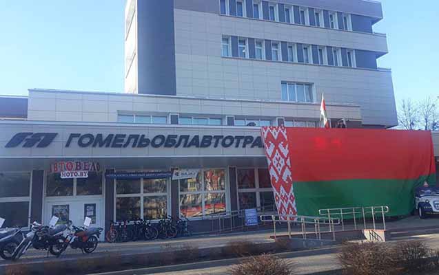 Днем в областном центре запустили флешмоб #ГомельКрасноЗеленый. Его активно поддержали онлайн и офлайн. В Сети и мессенджерах разлетелись фото с огромными государственными флагами на фасадах городских зданий.