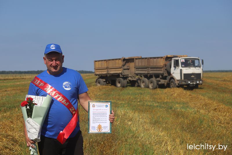 Гэта першы вынік у раёне і адзін з лідзіруючых у вобласці. Павіншаваць лідара збожжаўборкі, вадзіцеля МАЗа Сяргея Буцькаўца, уручыць падарункі, у тым ліку і грашовы, і паціснуць яму руку прыехалі ў поле кіраўнікі раённага ўзроўню. З гэтай добрай нагоды ў адрас усіх удзельнікаў жатвы былі сказаны добрыя і шчырыя словы падзякі.