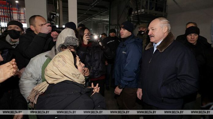 Президент Беларуси Александр Лукашенко посещает транспортно-логистический центр возле пункта пропуска «Брузги», где размещены беженцы, передает корреспондент БЕЛТА.