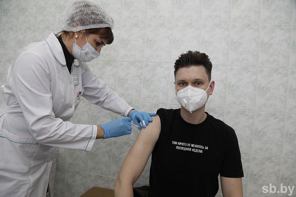 Возле прививочного кабинета многолюдно: количество пациентов в день — более сотни. Среди тех, кто ждет приема врача, и 36-летний Владимир Жданько. В его семье ковидом никто не болел, и этот факт он напрямую связывает с вакцинацией: