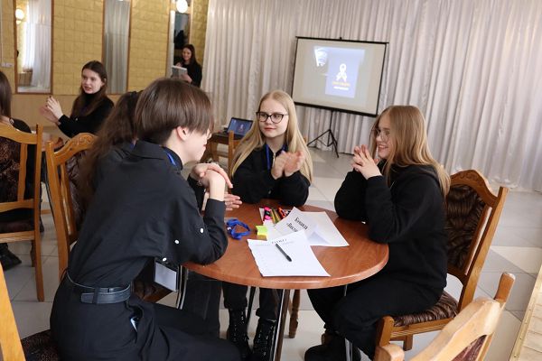 Битва умов проходила в три этапа: первый – экскурс в историю Конституции РБ; второй – Мировое кафе по тематике «Конституция», где учащимся за определенное количество времени необходимо было оформить интеллект-карту об Основном законе, затем передать карту по кругу. Третий – «Спикер» (защита карты).