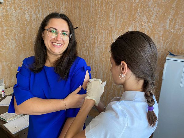 Все дружно на ревакцинацию отправились работники отдела образования, спорта и туризма Лельчицкого райисполкома и УМК во главе с начальником отдела Владимиром Грибом и председателем райкома профсоюза отрасли Надеждой Юркевич.