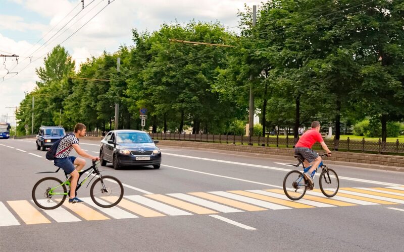 Согласно нововведениям в ПДД, разрешено будет не спешиваться с велосипедов при пересечении проезжей части, но в то же время, скорость должна быть равна скорости идущего шагом пешехода.