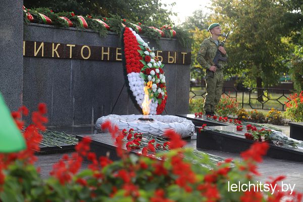 По традиции, 17 сентября в Лельчицах, в сквере у памятника опергруппе ЦК ВЛКСМ, лётчиков и партизан на торжественный митинг «Беларусь — единая!» собрались руководство района, члены районного исполнительного комитета, депутатский корпус, руководители и работники предприятий, учреждений и общественных организаций района, ветераны труда, молодёжь, жители горпосёлка.